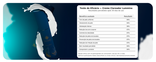 Sim. A combinação de ativos clareadores e renovadores também ajuda a prevenir pelos encravados e reduzir a acne corporal. Em estudo, 87% dos usuários notaram melhora nesses problemas após 30 dias.
